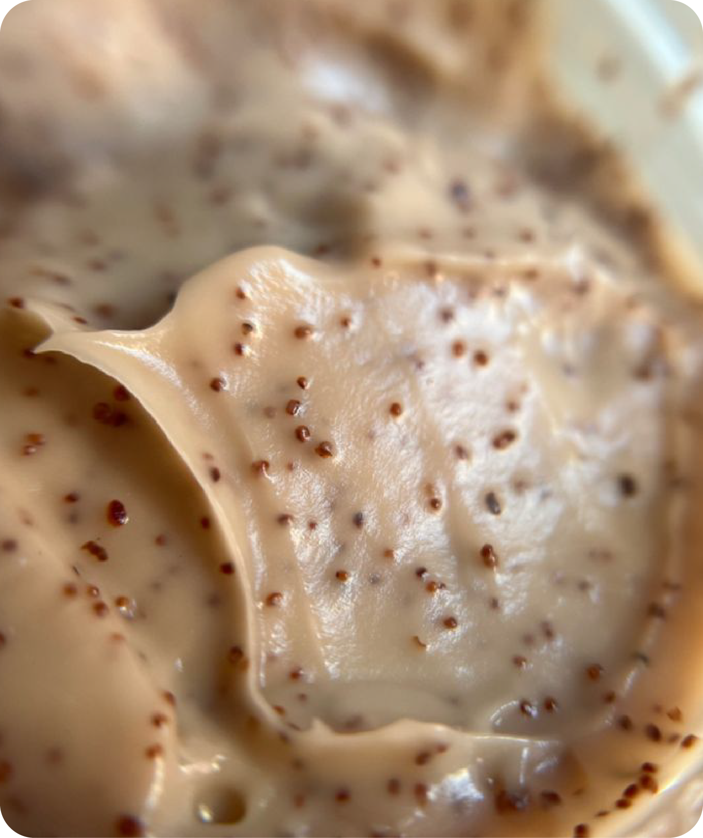 A balmy cleanser , gentle enough for daily use, that cleanses & exfoliates without leaving the skin dry, tight & flaky. The gentle, coconut based surfactants used , won’t disrupt your skin’s natural barrier